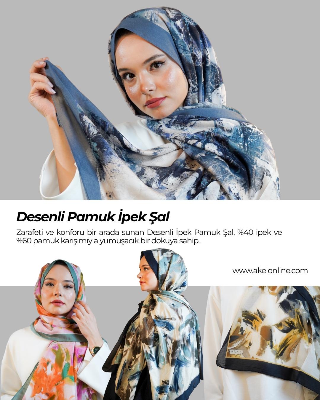 Desenli Pamuk İpek Şal