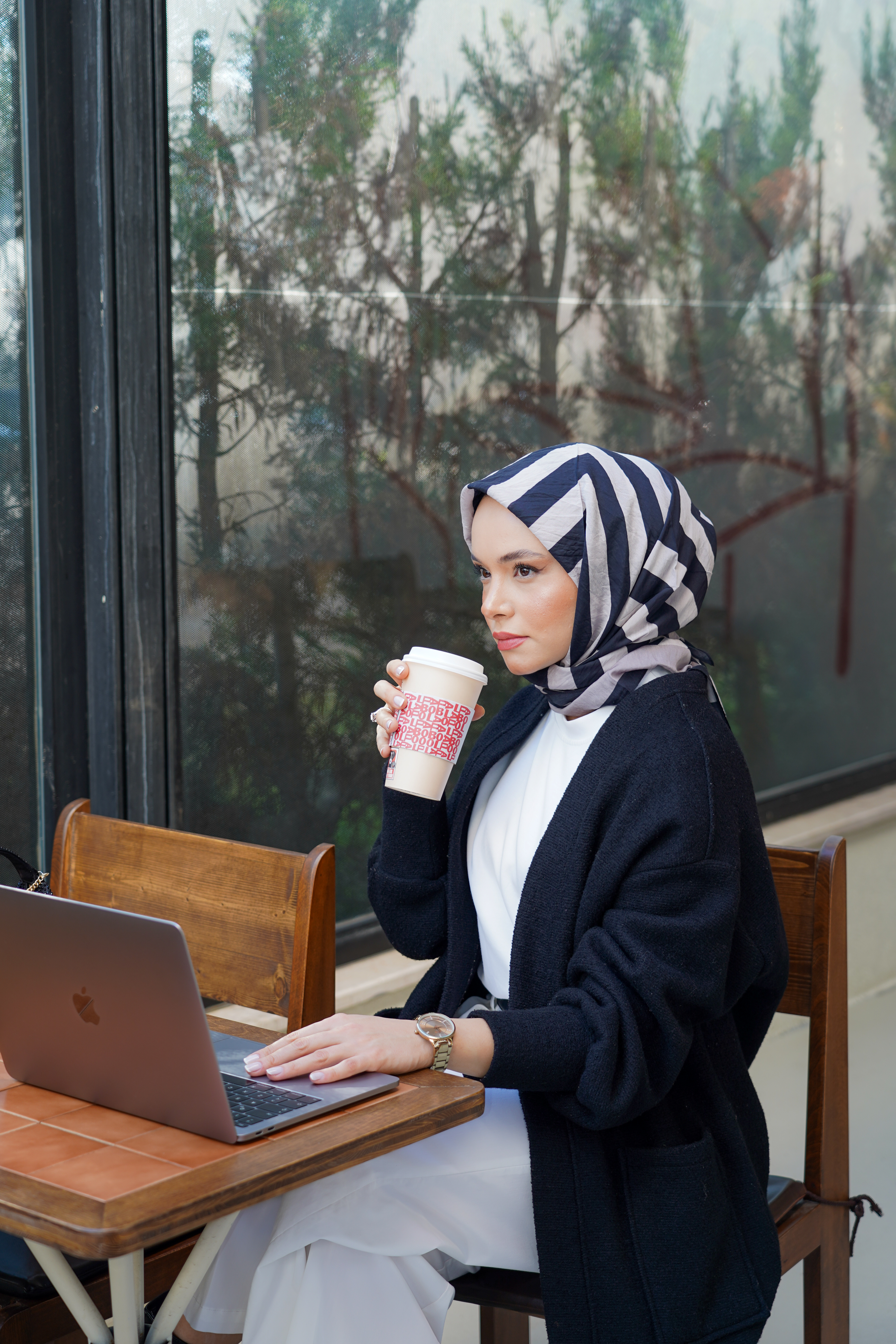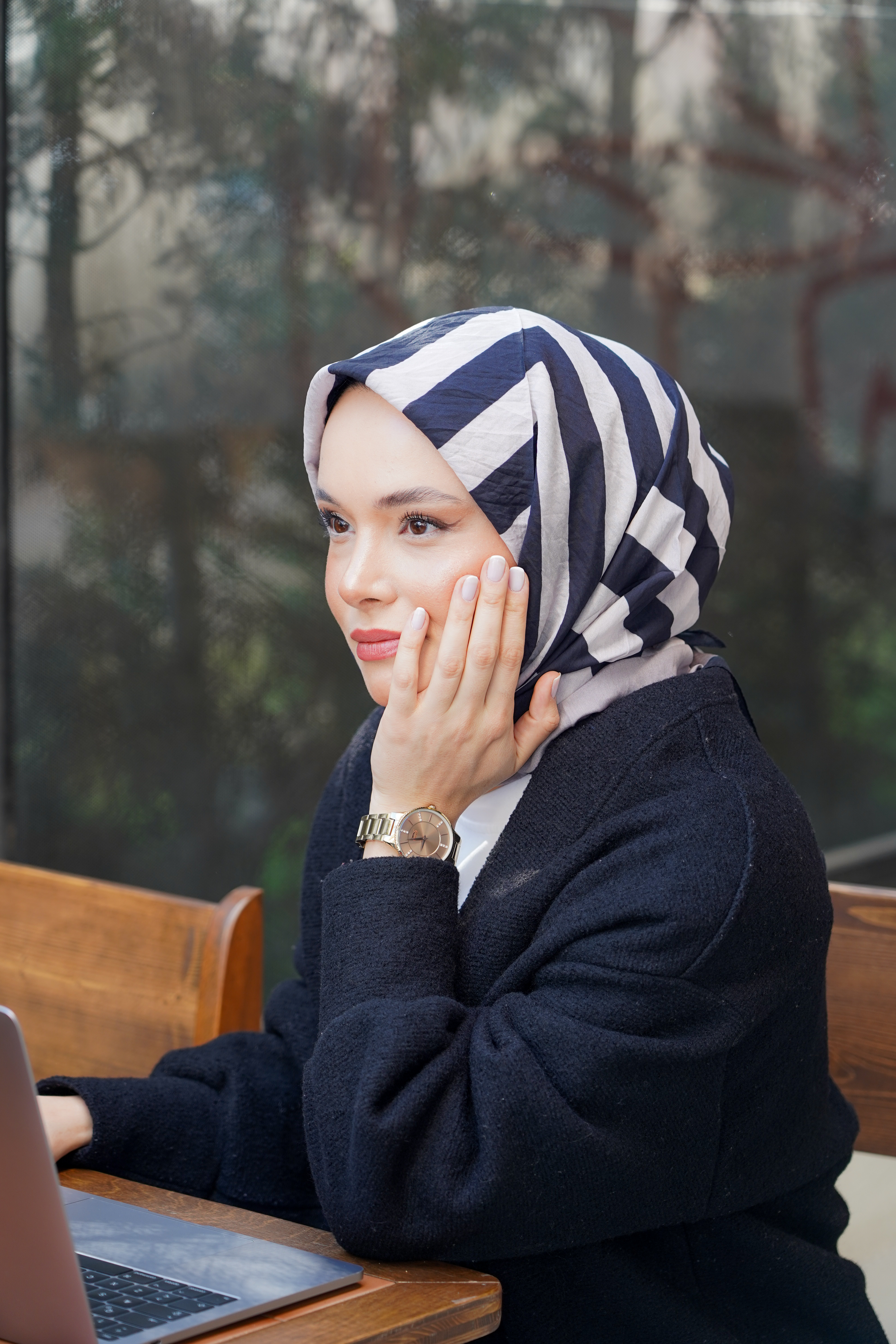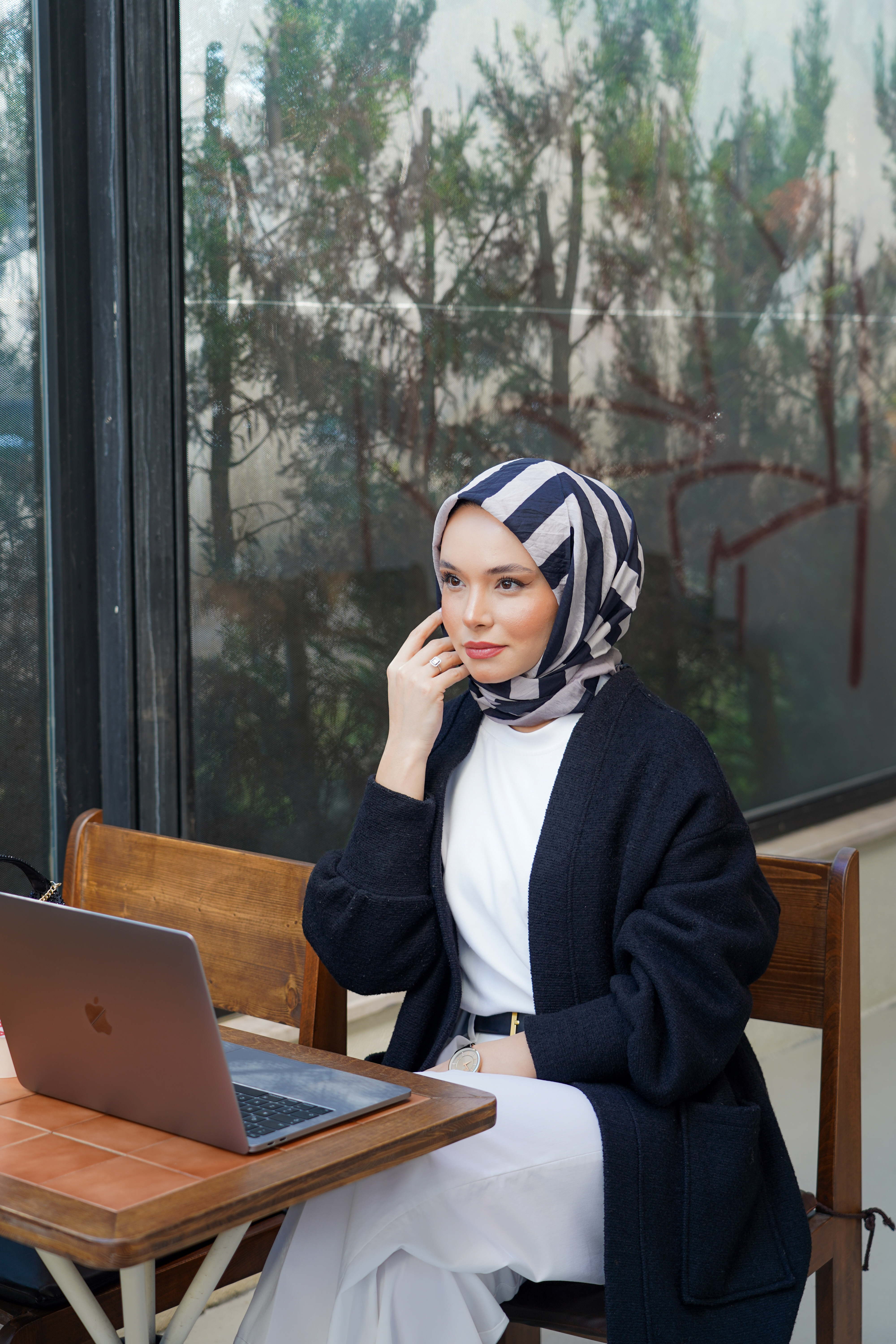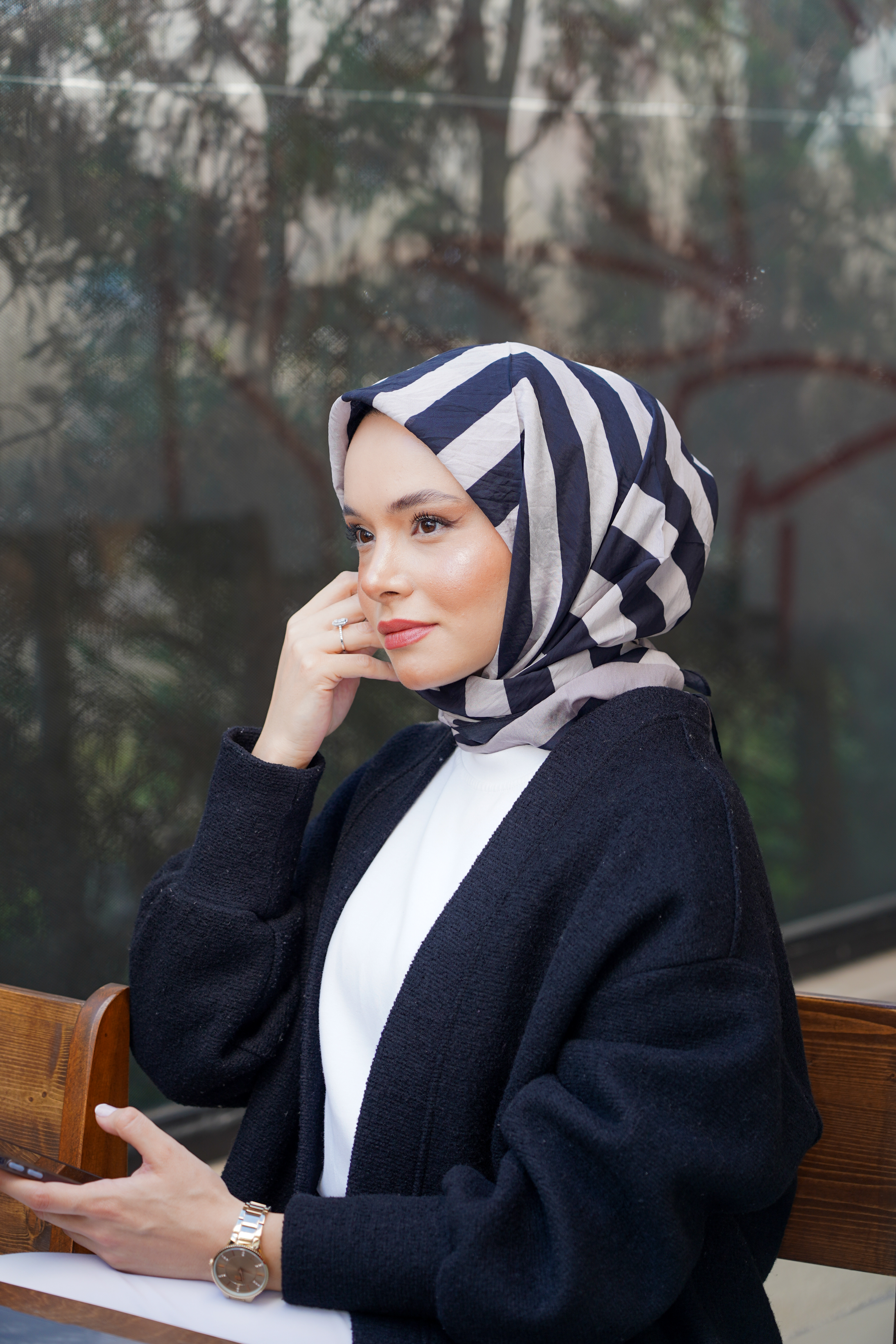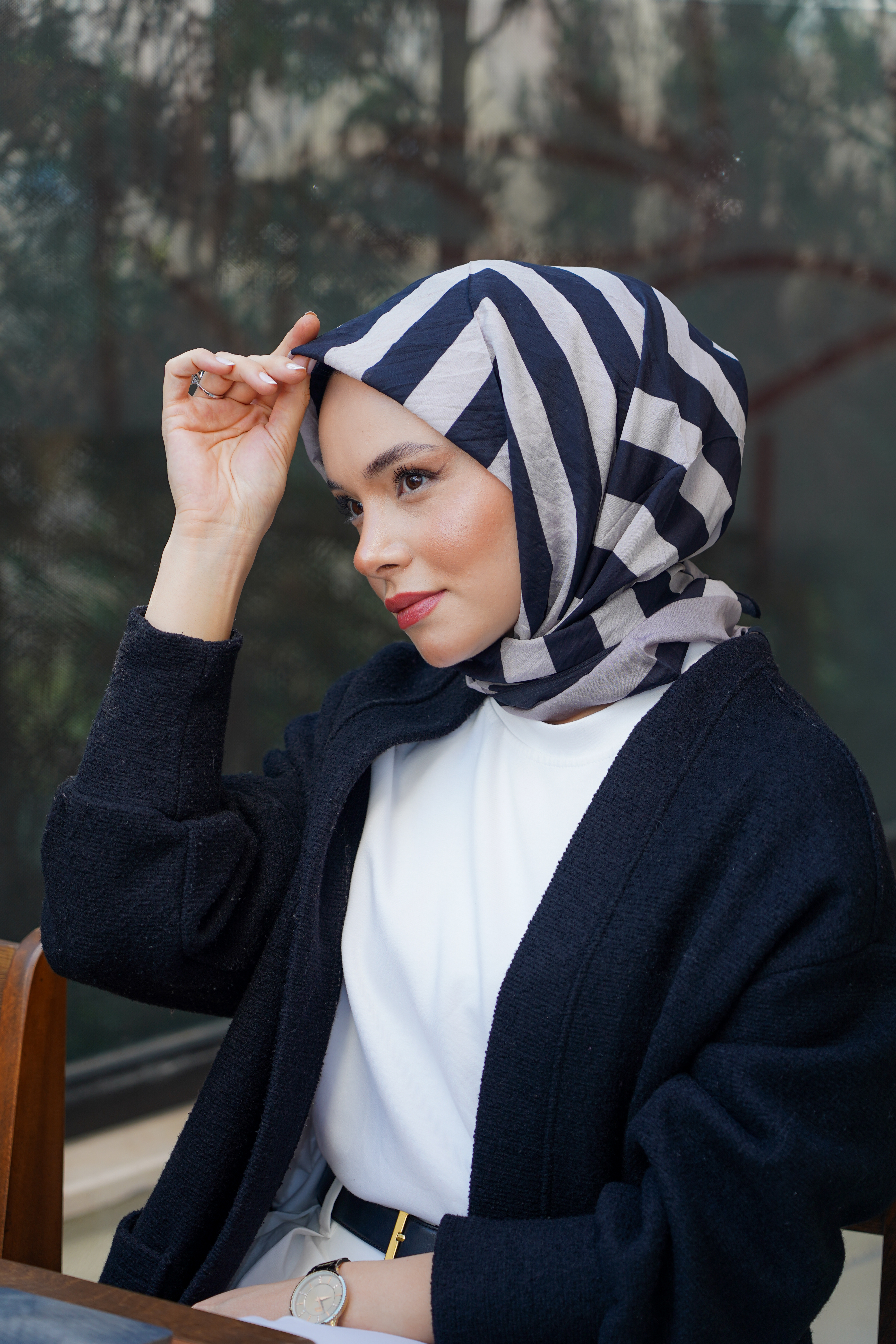 Modern çizgiler ve zarif detayların buluştuğu Desenli Spring Eşarp,