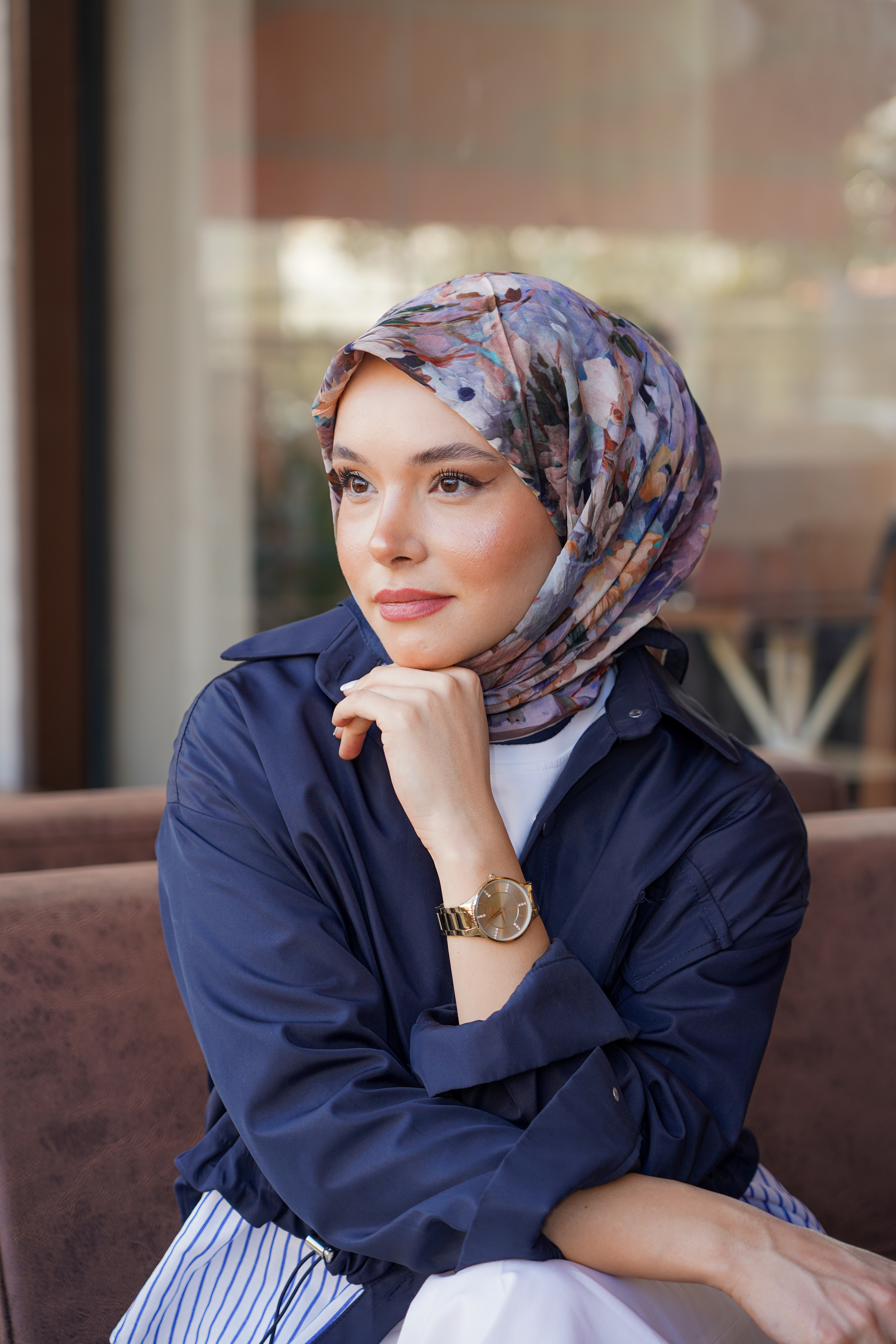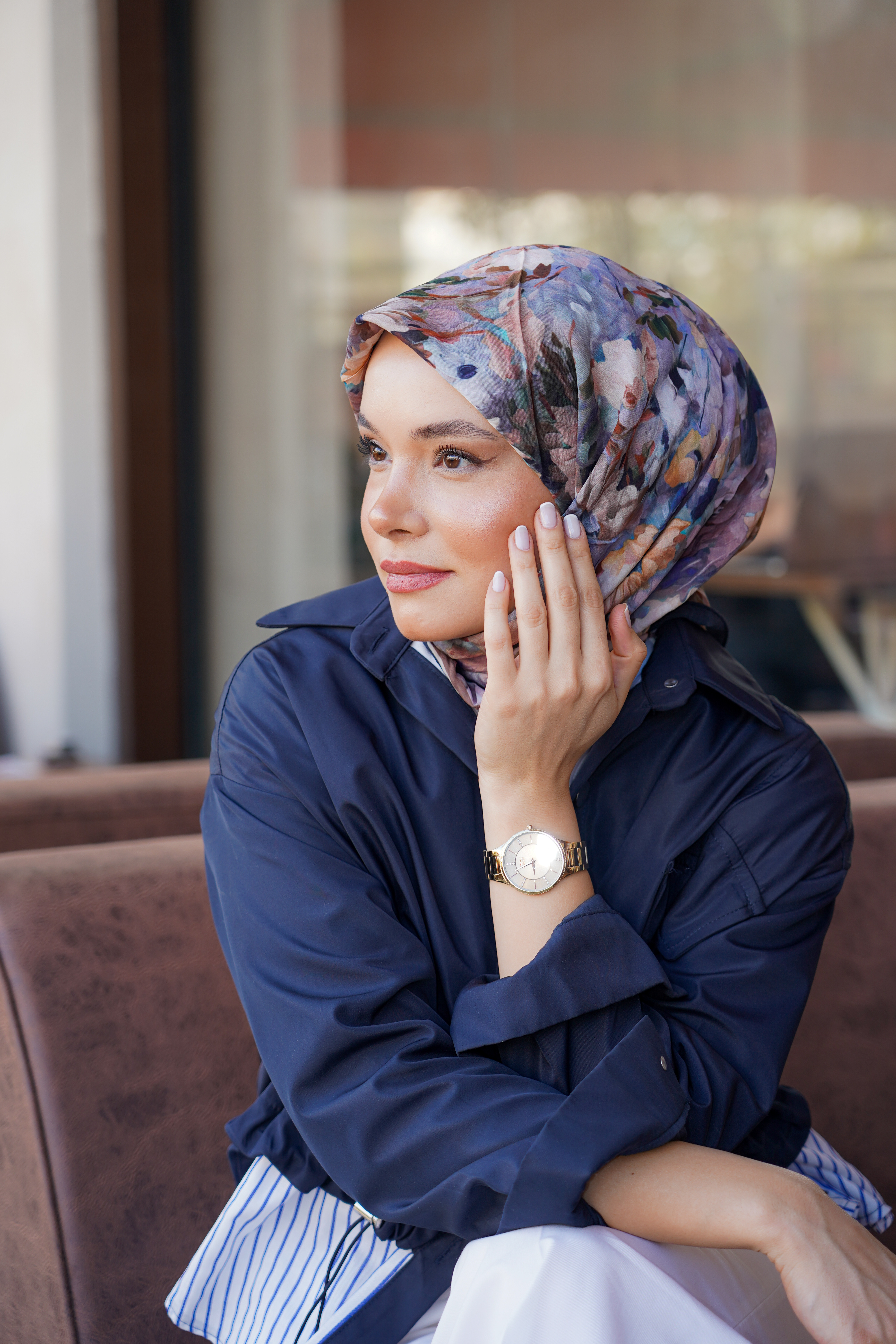 Modern çizgiler ve zarif detayların buluştuğu Desenli Spring Eşarp,